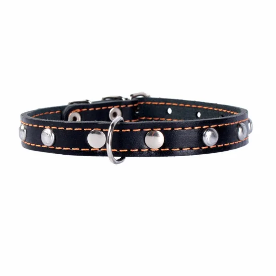 Повседневный кожаный ошейник с металлическими заклепками и застежкой из нержавеющей стали.