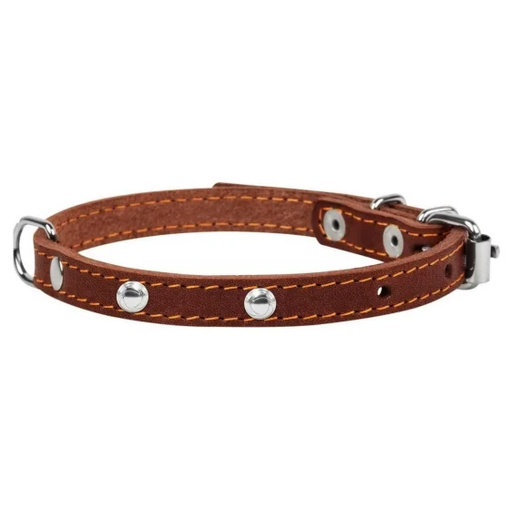 Ошейник одинарный с украшением для собак 12 мм, 24-32 см, коричневый