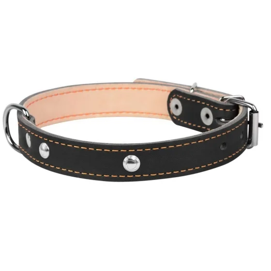 Ошейник выполнен из двух слоев кожи с украшением.