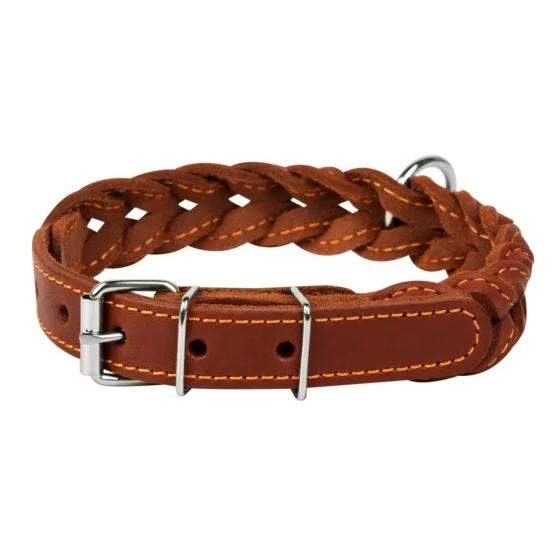 Ошейник двойная коса для собак 20 мм, 32-40 см, коричневый
