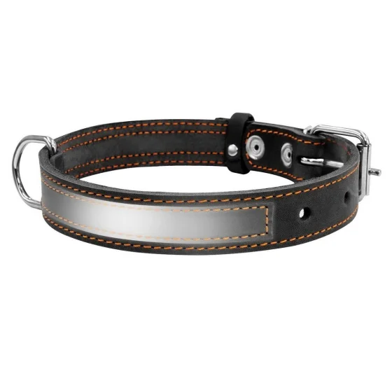 Ошейник со светоотражающей лентой из высококачественной кожи со светоотражающей нашивкой.