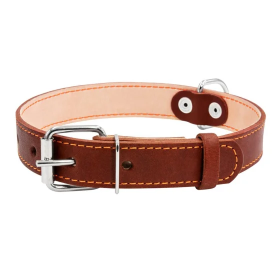 Ошейник двойной для собак 25 мм, 38-50 см, коричневый