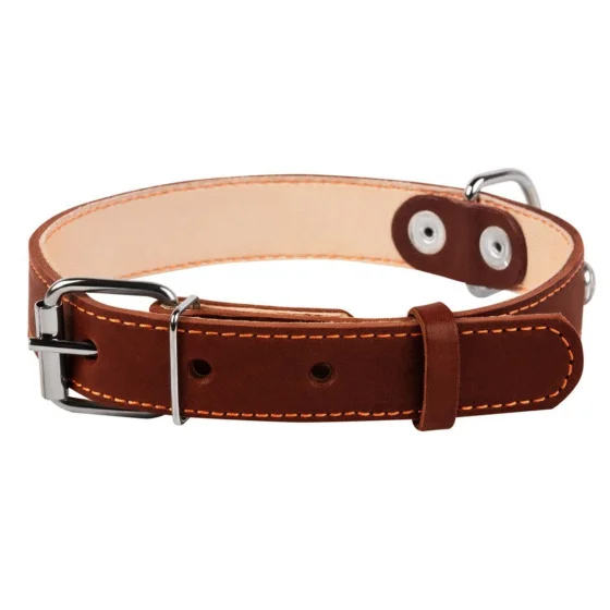 Ошейник выполнен из двух слоев кожи с украшением.