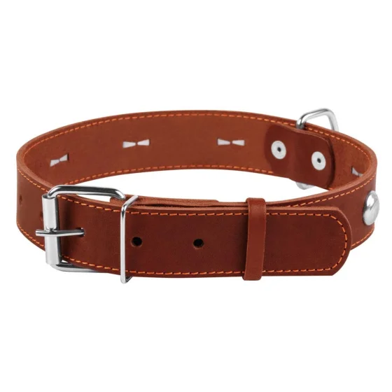 Ошейник одинарный с украшением для собак 35 мм, 48-63 см, коричневый