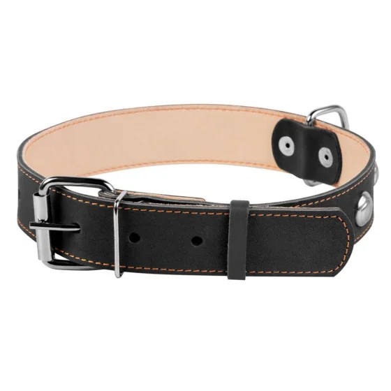 Ошейник выполнен из двух слоев кожи с украшением.