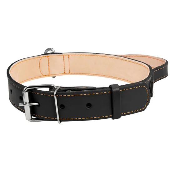 Ошейник двойной с ручкой для собак 35 мм, 48-63 см, черный