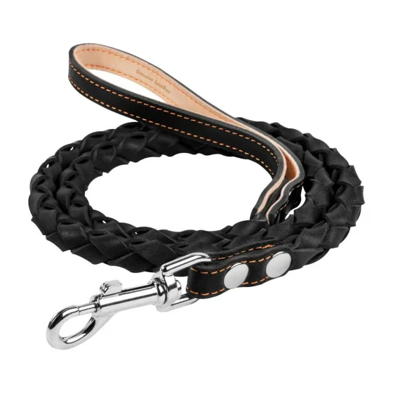 Поводок круглое плетение со вставкой для собак 16 мм, 122 см, черный
