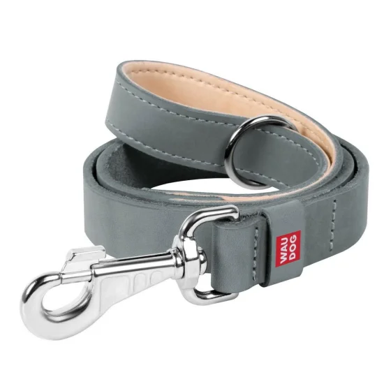 Кожаный поводок Waudog Classic для собак 14 мм, 122 cм, серый
