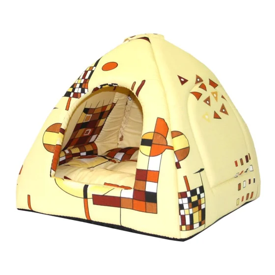 Домик-пирамида для домашних животных серии "Теремок" от Collar Company служит отличным местом для уединения и сна. Данное изделие подходит для кошек и маленьких собак. Конструкция сделана из поролона (межстенный наполнитель), котона (50%) и полиэстер (50%), а внутри домик комплектуется мягкой, удобной подушкой. Лежак не тяжёлый и его легко переносить в другое место. Также, благодаря закрытой конструкции, питомец сможет отдохнуть в тишине и не боятся сквозняков.