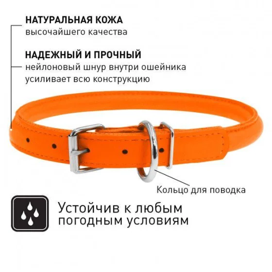 Ошейник Waudog Glamour круглый, диаметр 8 мм, длина 25-33 см, оранжевый