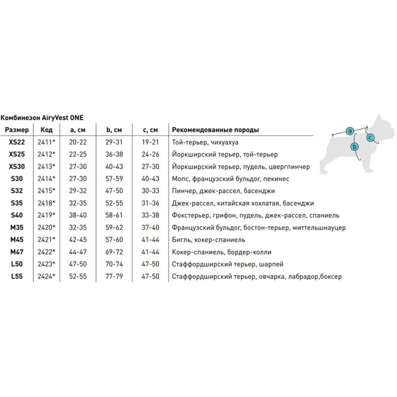 Комбинезон AiryVest One S30 — практичная и удобная одежда для маленьких собак. Он лёгкий, прочный и водоотталкивающий, защищает питомца от ветра, холода и влаги.