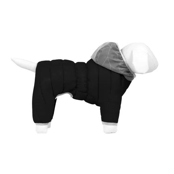 Комбинезон полностью закрывает тело собаки, обеспечивая комфорт и свободу движений во время прогулок в любую погоду.