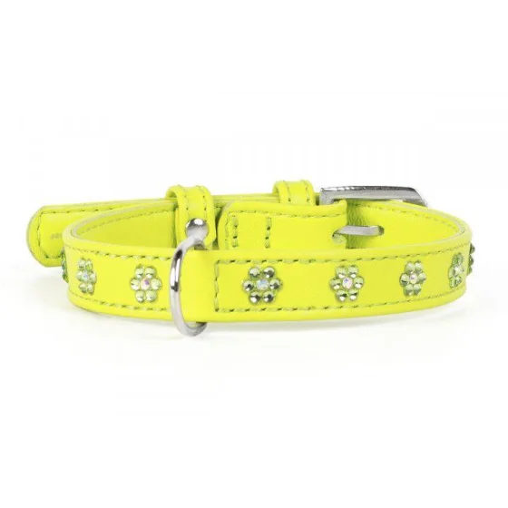 Ошейник Waudog Glamour с клеевыми стразами "Цветочек", ширина 9 мм, длина 18-21 см, салатовый
