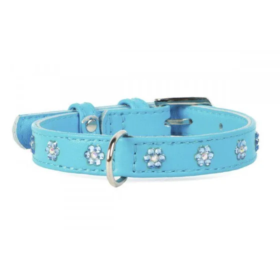 Ошейник Waudog Glamour с клеевыми стразами "Цветочек", ширина 9 мм, длина 19-25 см, голубой