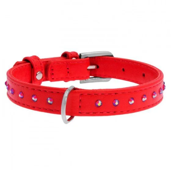 Ошейник Waudog Glamour с клеевыми стразами, ширина 12 мм, длина 21-29 см, красный