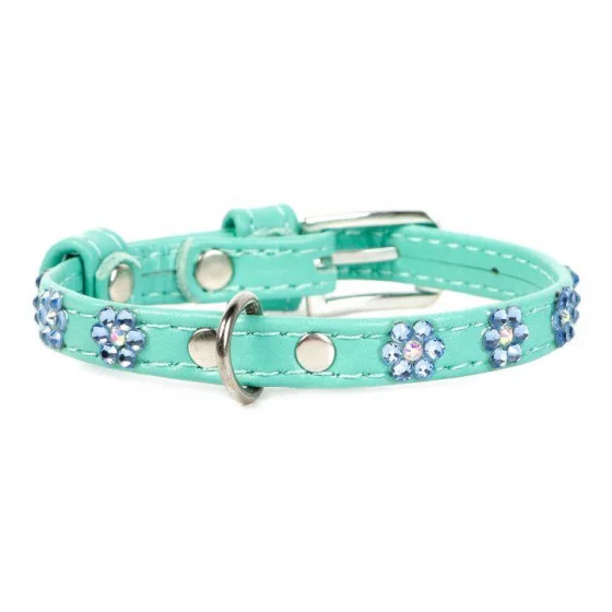 Ошейник Waudog Glamour с клеевыми стразами "Цветочек", ширина 15 мм, длина 27-36 см, ментоловый