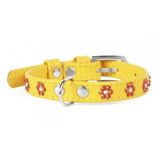 Ошейник Waudog Glamour с клеевыми стразами "Цветочек", ширина 15 мм, длина 27-36 см, желтый