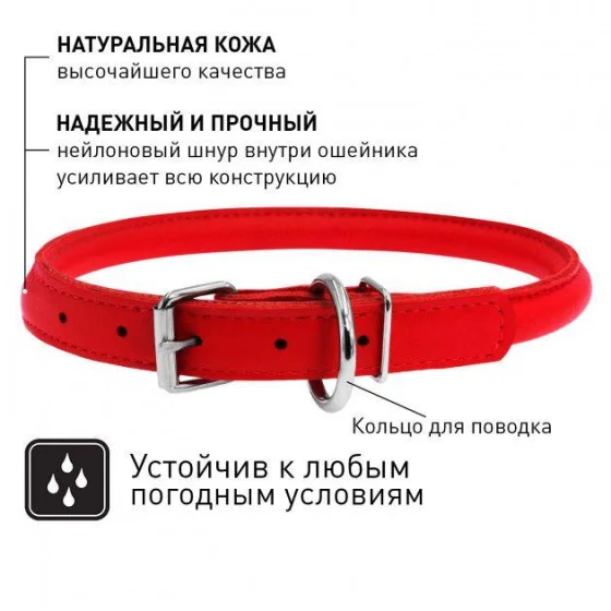 Ошейник Waudog Glamour круглый, диаметр 13 мм, длина 53-61 см, красный