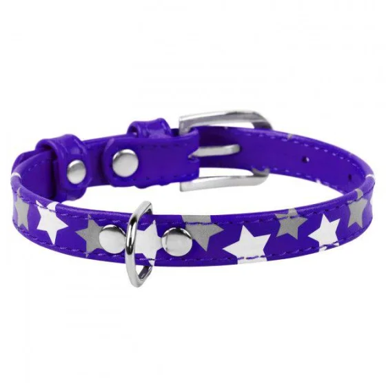 Ошейник Waudog Glamour с узором "Звёздочка", ширина 25 мм, длина 38-49 см, фиолетовый