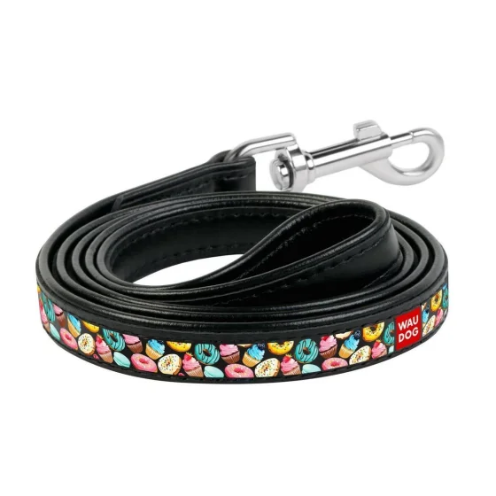 Поводок Waudog Printed с рисунком Пончики для собак 12 мм, 122 см, черный