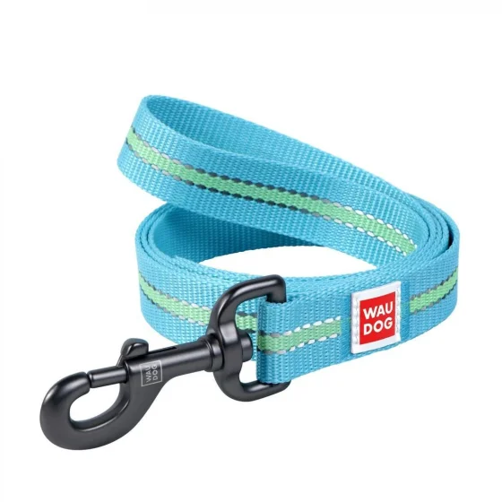 Поводок светонакопительный Waudog Nylon для собак 15 мм, 122 см, голубой