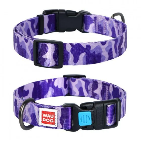 Ошейник Waudog Nylon с рисунком "Фиолетовый камо" ширина 15 мм, длина 23-35 см