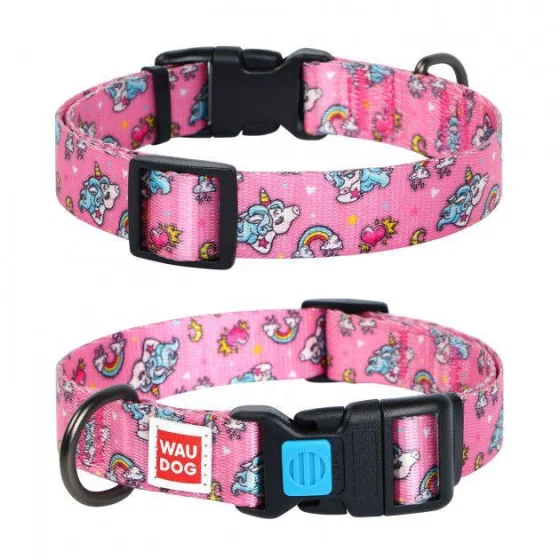 Ошейник Waudog Nylon с рисунком "Единороги" ширина 25 мм, длина 35-58 см