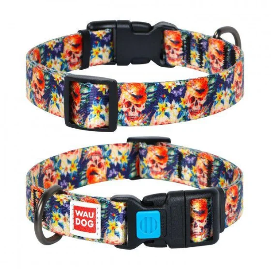 Ошейник Waudog Nylon с рисунком "Гламурные черепа" ширина 25 мм, длина 31-49 см