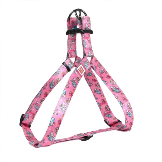 Шлея Waudog Nylon для собак с рисунком Единороги 15 мм, 40-55 см