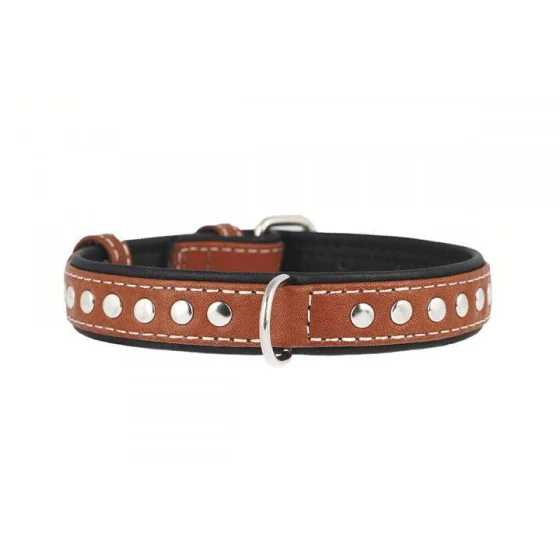 Ошейник Waudog Soft с металическим украшением, коричневый верх, ширина 20 мм, длина 30-39 см