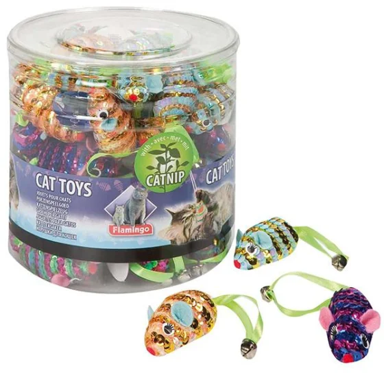 Игрушка Flamingo Mouse Spiral для котов – спиральная мышка размером 6,5 см с кошачьей мятой, которая привлекает внимание вашего питомца и стимулирует игру. Яркие пайетки на поверхности мышки шелестят, добавляя азарт и побуждая кота к активности.
