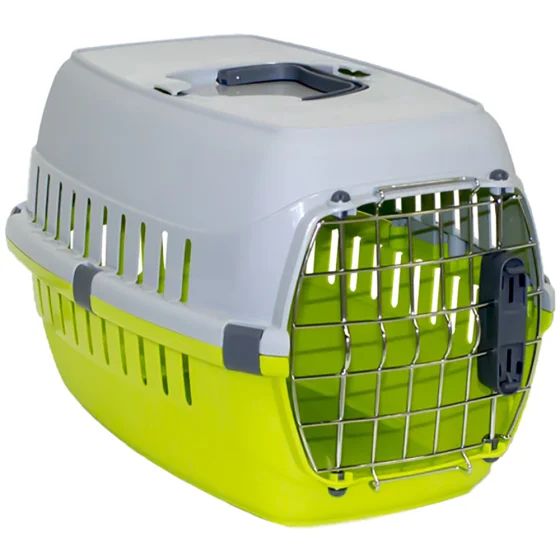 Решетчатая металлическая дверца имеет надежный замок, отвечающий стандарту IATA (стандарт, требуемый Международной ассоциацией воздушного транспорта для транспортировки животных), который не откроется самопроизвольно в пути.