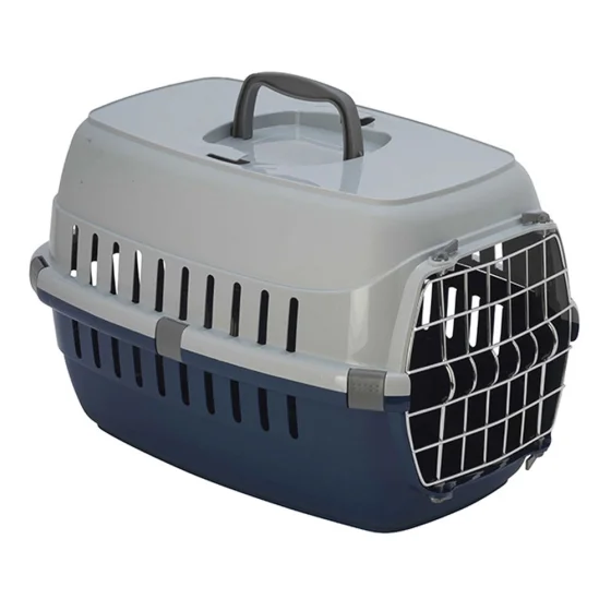 Решетчатая металлическая дверца имеет надежный замок, отвечающий стандарту IATA (стандарт, требуемый Международной ассоциацией воздушного транспорта для транспортировки животных), который не откроется самопроизвольно в пути.