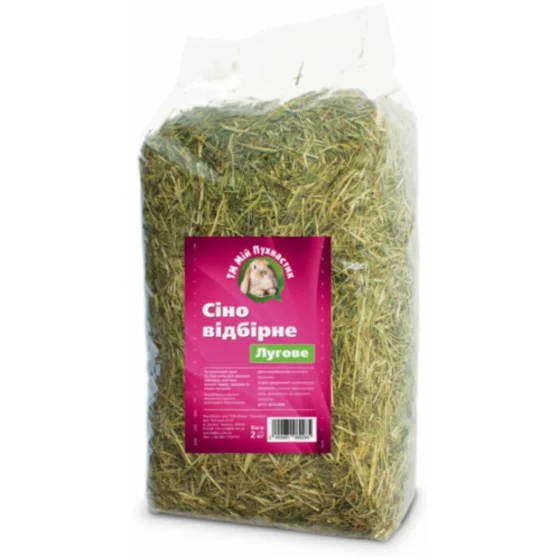 Мой Пушистик сено луговое отборное, 2 кг — натуральный корм для грызунов и кроликов, приготовленный из тщательно отобранных луговых трав. Сено богато клетчаткой, витаминами и минералами, способствует здоровому пищеварению, стачиванию зубов и поддерживает общее самочувствие питомцев. Упаковка 2 кг идеально подходит для регулярного кормления и экономичного использования.