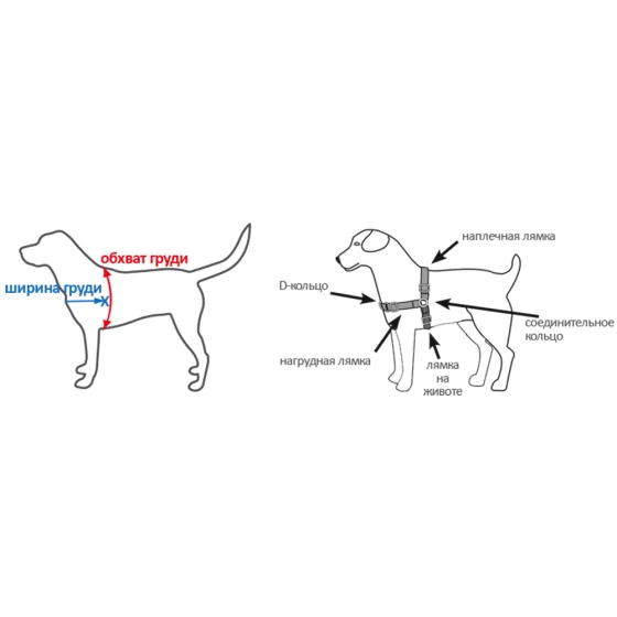 Чтобы правильно выбрать размер шлеи, необходимо произвести 2 замера вашей собаки:
