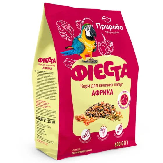 Корм Природа Фієста для великих папуг – це справжній делікатес! Птах їсть із задоволенням, а склад насичений і корисний.