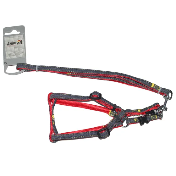 Набор шлейка и поводок AnimAll Denim, красный 1×120 см/1×28-38 см
