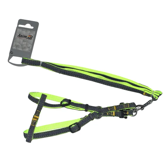 Набор шлейка и поводок AnimAll Denim, зелёный, 1×120 см/28-38 см