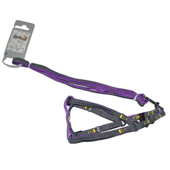Набор шлейка и поводок AnimAll Denim, фиолетовый, 1.5×120 см/1.5×36-46 см