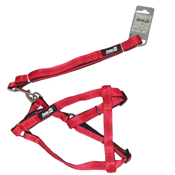 Набор шлейка и поводок AnimAll, красный, 2×120 см/2×40-65 см