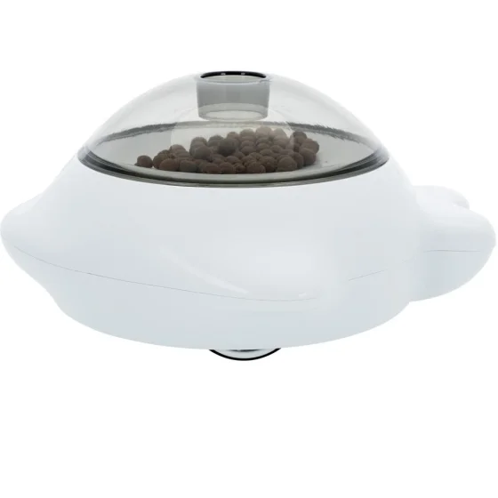 Кормушка изготовлена из прочного пластика, безопасного для домашних питомцев. Легко наполняется любимыми лакомствами или сухим кормом, обеспечивая увлекательный процесс питания и игры.