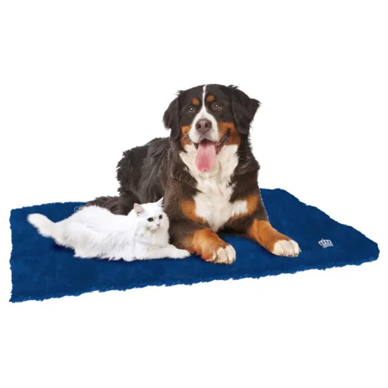 Греющий коврик Croci Furry для котов и собак, синий, 105×70 см, самонагревающийся без использования электричества. Мягкий плюшевый чехол и нескользящее дно обеспечивают комфорт, а внутренний изоляционный слой удерживает тепло, вырабатываемое животным.