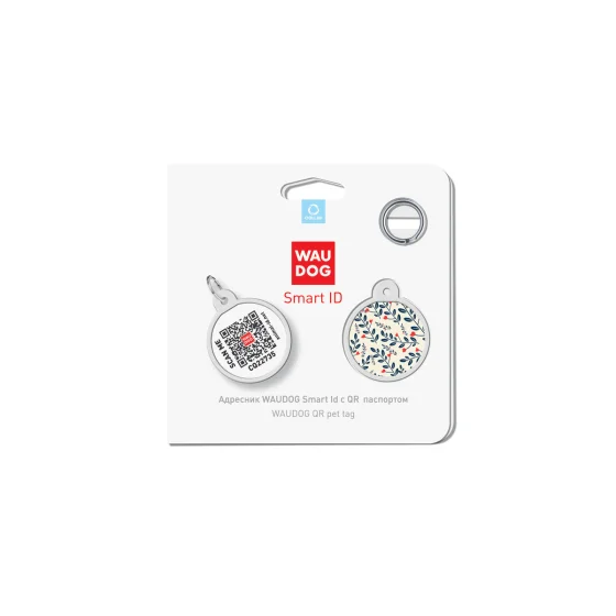 Адресник WAUDOG Smart ID с QR-паспортом, рисунок "Растения", диаметр 25 мм