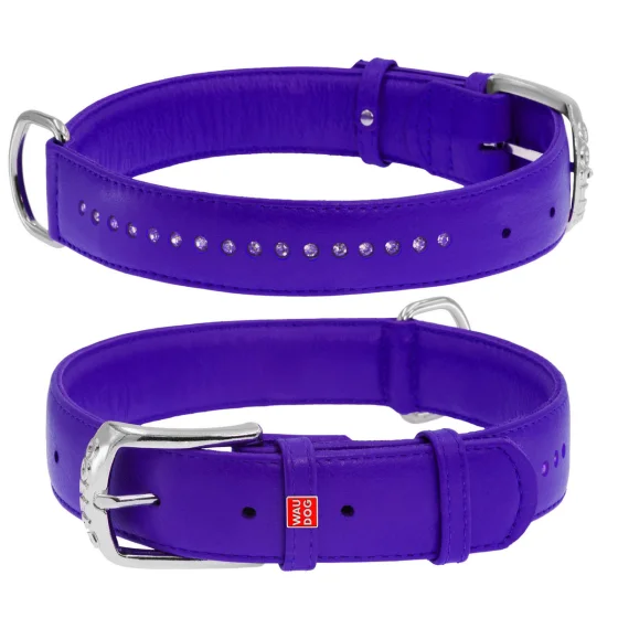 Ошейник WAUDOG GLAMOUR, со стразами, ширина 25 мм, длина 38-49 см, фиолетовый