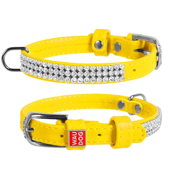 Ошейник WAUDOG GLAMOUR, со стразами, ширина 9 мм, длина 18-21 см, желтый
