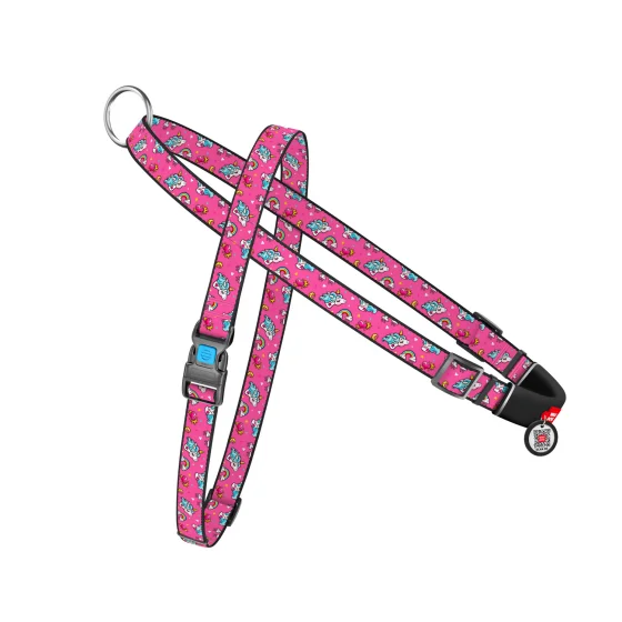 Шлея с ручкой Waudog Nylon для собак, с QR паспортом, рисунок Единороги, размер S, 15 мм, 40-55/45-60 см
