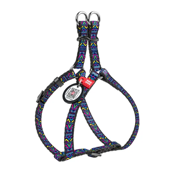 Шлея Waudog Nylon для собак, с рисунком Инди, разноцветный, 10 мм, 28-40 см