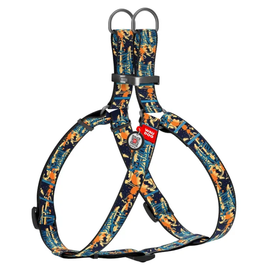 Шлея Waudog Nylon для собак, с QR паспортом, рисунок Бэтмен Джинс, разноцветный, 25 мм, 60-90 см