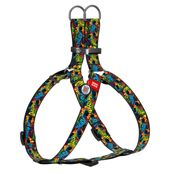 Шлея Waudog Nylon для собак, с QR паспортом, рисунок Бэтмен яркий, разноцветный, 15 мм, 40-55 см