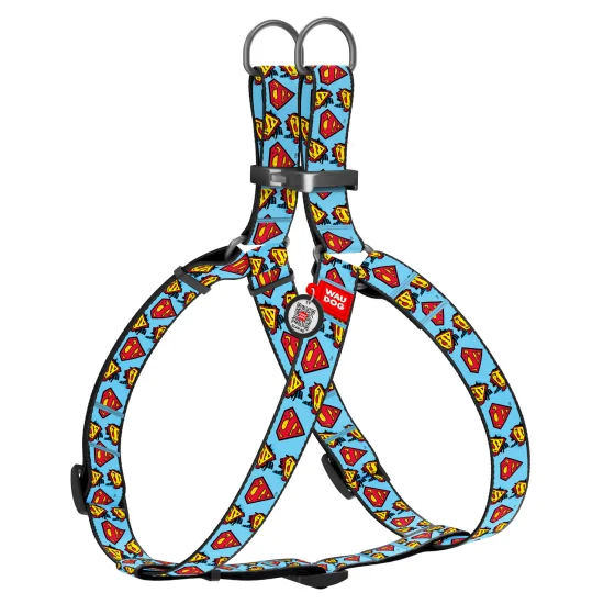 Шлея Waudog Nylon для собак, с QR паспортом, рисунок Супермен, голубой, 20 мм, 50-80 см